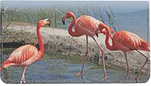 Flamingos are the national bird of the Bahamas and in ancient Peru the Moche frequently depicted flamingos in their art. Now, you can carry your own little flamingo gallery with you everywhere you go when you take along these lakeside flamingos in your checkbook! It's not often you have such riveting company with you!