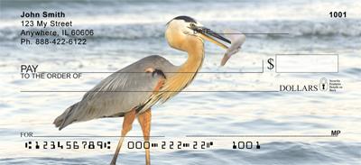 With their long legs and necks, herons are some of the most easily identified of all the birds. Carnivorous creatures, they feed on prey such as amphibians, fish, and other aquatic creatures. This stunning check series manages to capture the herons in their full glory in four captivating images that rotate with each check you write so that ever check will differ from the one before it.