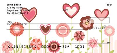 Personal Checks : Stylistic Designs : Floral : Retro Heart Flowers Checks