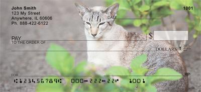 Regal and mysterious looking, the frisky Siamese is one of the most captivating felines out there. It might not always be easy to please them, but once you get in their good graces, you'll be hard-pressed to find a more loyal pet! These beautiful Siamese personal check designs will remind you of why you'll always be a cat person!