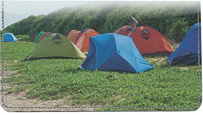 Tent Camping Leather Checkbook Cover